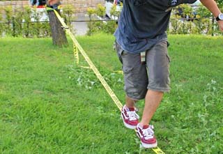 5cm幅のベルト状のラインを利用したスポーツなのですが、体幹・バランス能力が鍛えられることから各スポーツのトレーニング現場にも導入され、その効果が認知されるようになってきています。